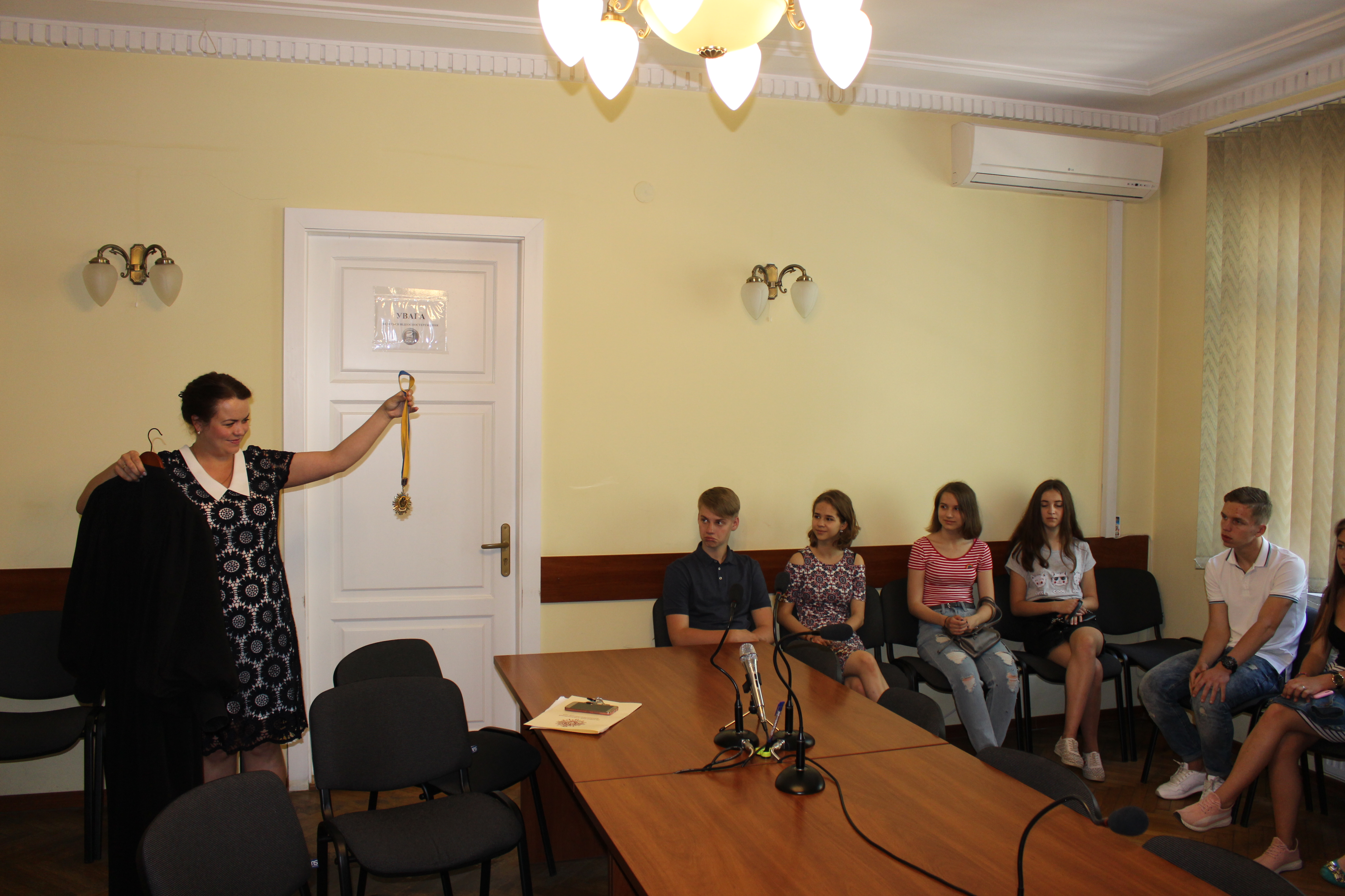 Помічник судді Анна Баранкевич зробила акцент на символах судової влади в Україні та на їх відмінностях від іноземних атрибутів.
